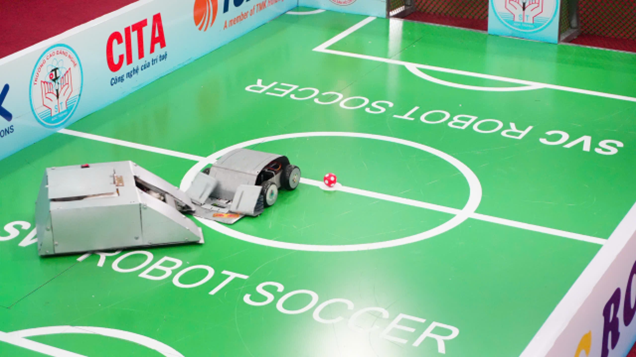 Nhiều công nghệ ấn tượng được vận dụng, gửi gắm vào các robot như cảm biến khoảng cách và định vị để robot tự động né tránh chướng ngại vật, bộ điều khiển AI mini để phân tích hướng bóng, hệ thống motor tốc độ cao cho khả năng di chuyển linh hoạt, thiết kế khung robot bằng vật liệu sẵn có trong học tập, thực hành, bền, tăng độ ổn định khi va chạm. Nhờ đó, các trận đấu diễn ra vô cùng sôi nổi, với những pha ghi bàn đẹp mắt đến từ các robot do học sinh, sinh viên tạo ra.